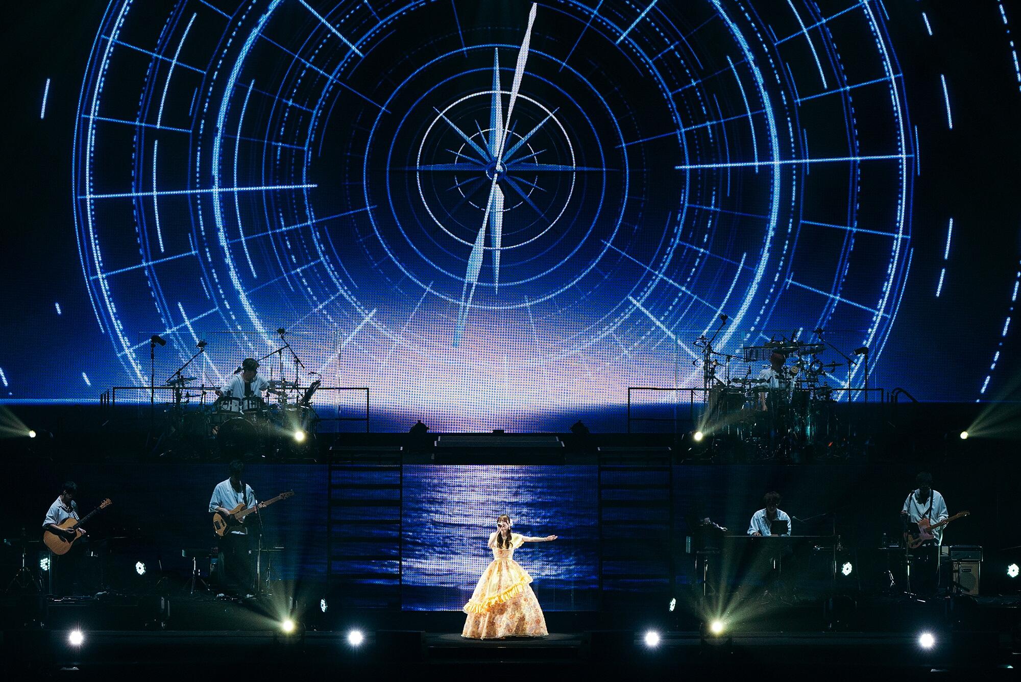 と『Turquoise』収録『海踏みのスピカ』へ。藤永龍太郎による高BPMのメロディに「いつの間にか長くなった影を追い越して 羅針盤が指す方へとひたすら走ってきた」「数え切れないくらい 言の葉にしてきたけど それでもまだまだ 伝えきれない事ばっかりだね」と語りかけると、場内一体で「輝きを確かめに行くんだ どこまでも君と一緒に」と大合唱。『TRUST IN ETERNITY』では大きく羽根を広げる映像をバックにテンポアップして熱唱、観客はペンライトを赤に変えてコールとジャンプで応え、後奏をいのりバンドがソロ演奏の応酬で魅せ大歓声。