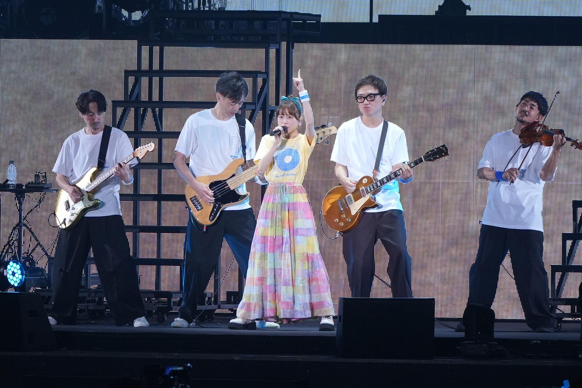 次に唄う曲ももれなく泣いちゃうかもね。でも生理現象ですから、みんながこの場所にいるっていうことの証明だと思うので、この涙も、受け止めて、抱きしめて、焼き付けて、みんなで1つになりたいと思います」