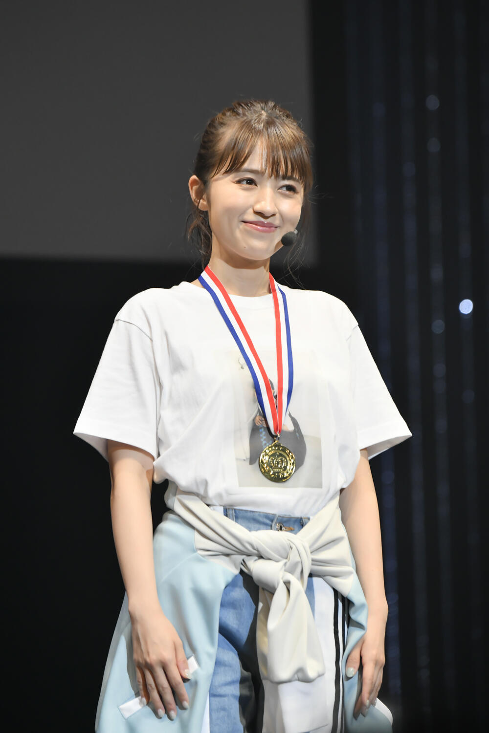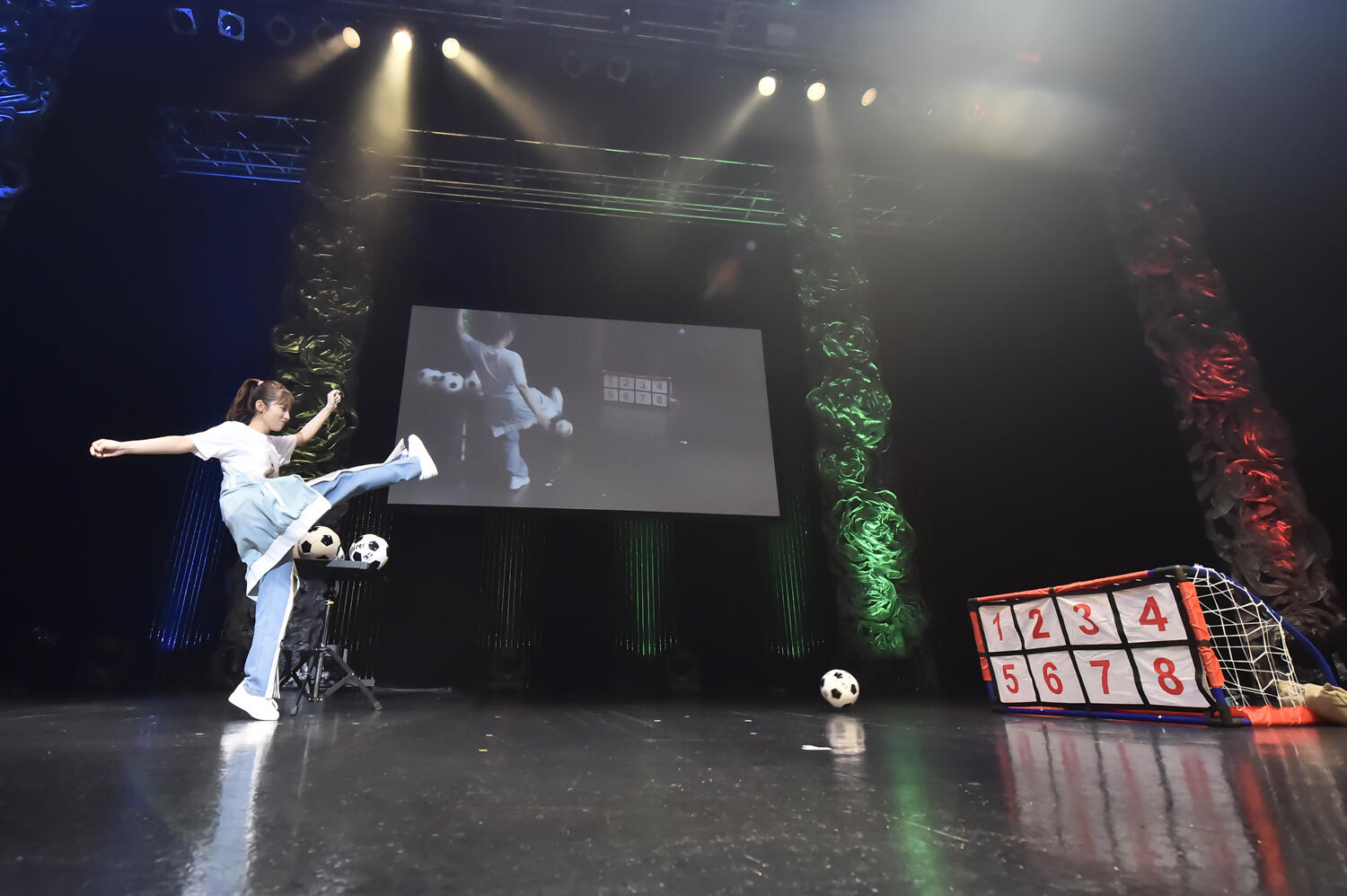 「夏の全力運動会」最後の競技は、「サッカーストラックアウト」。小さなサッカーゴールのマウス内の8等分されたパネルを、シュートで当てていくというものだが、軽快なマーチに乗せて入場した逢田選手は、「足使った競技がすごく苦手で……」といつになく自信がない。しかし最後の競技というのもあって「本気出していいですか?」と、着ている「Us」のジップアップジャージを一度脱いでは、また着て、もう一度脱ぐというムーブを見せて本気のほどを見せる。最初のシュートは7番のパネルを宣言したが、惜しくも枠の外。しかし同じく7番を宣言しての二度目のシュートは、なんと7番のみならず隣接しないパネルも含めて5枚抜きを果たすという、驚愕のシュート力を見せた。ここまできたら全部のパネルを抜こうとなったが、以降は枠を捉えることができず、最後に泣きの一回で打ったシュートは、すでに抜いた8番を捕らえ、「誕生日と同じということで」辛くも逢田選手が勝利を飾った。こうして全競技が終了、すべての競技を勝利で終えた逢田選手は見事優勝に輝いた。感染拡大防止のため、授与された金メダルをみずから首にかけると、「このために頑張ってきました!」と笑顔をのぞかせた。