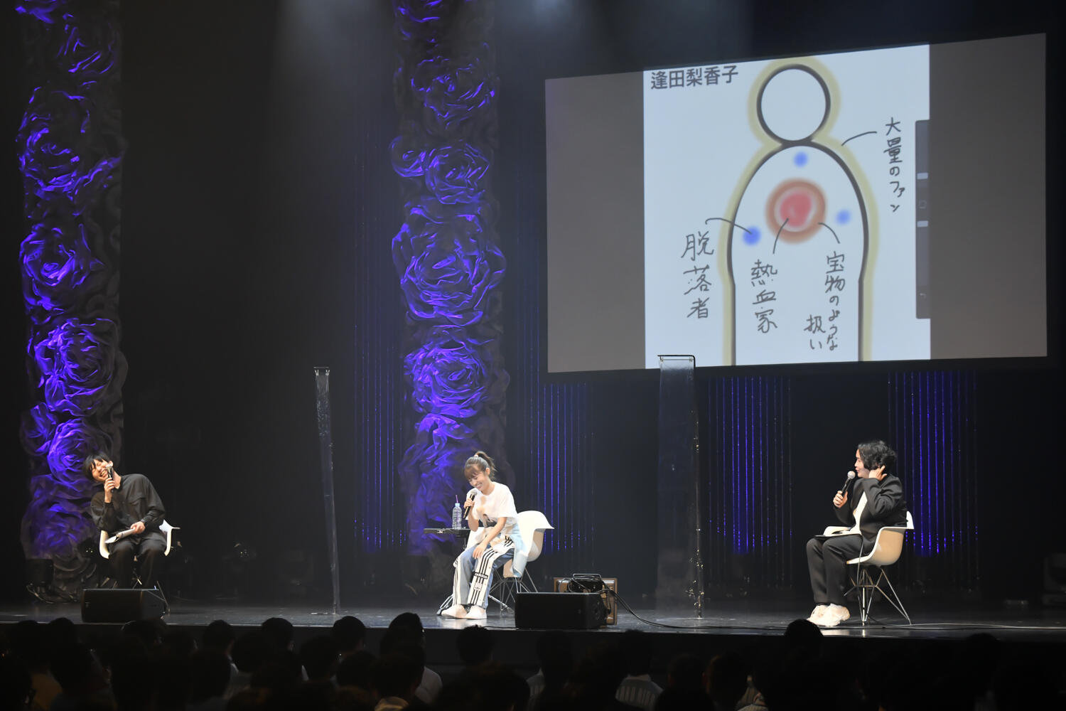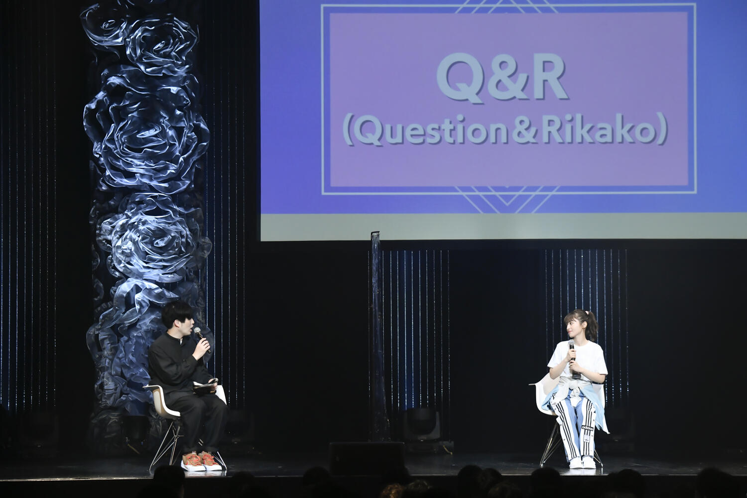 続いては、逢田と遠山によるトークコーナー。この日29歳を迎えたことに逢田は「29年歳を重ねてきた感覚がない」といいつつ、「それだけ充実しているってことですよね」と自身のこれまでを振り返った。一方でこの2年は普段とは異なる過ごし方となったことについては、「この1年はせっかちになっていた気がします。どんどん時間が経ってしまうのがもどかしかったり、もっと頑張らないとっていつもよりせかせかした1年だった」と振り返り、「この一年は、また気持ちにゆとりをもっって自分のペースでやれたらと思います」と29歳の抱負を語った。続いては「Us」のメンバーからの質問に答える「Q&R(Question & Rikako)」のコーナーへ。「とうもろこしの思い出」や「1日だけ小学一年生になったら何して過ごす?」など、なかなかトリッキーな質問があるなか、「2年前のZepp Tokyoから現在までステージに立つ気持ちは変わった?」という質問には、「2年前にソロ歌唱したのがこの場所で、そのときは本当にひとりでの歌唱が恐怖で」とアーティストデビュー当時を振り返りながら、「この2年間の経験が自分を鼓舞してくれて、また観にきてくれるみなさんに自分をあずけるようなかたちで楽しめるようになりました」と現在のステージにかける想いを語った。